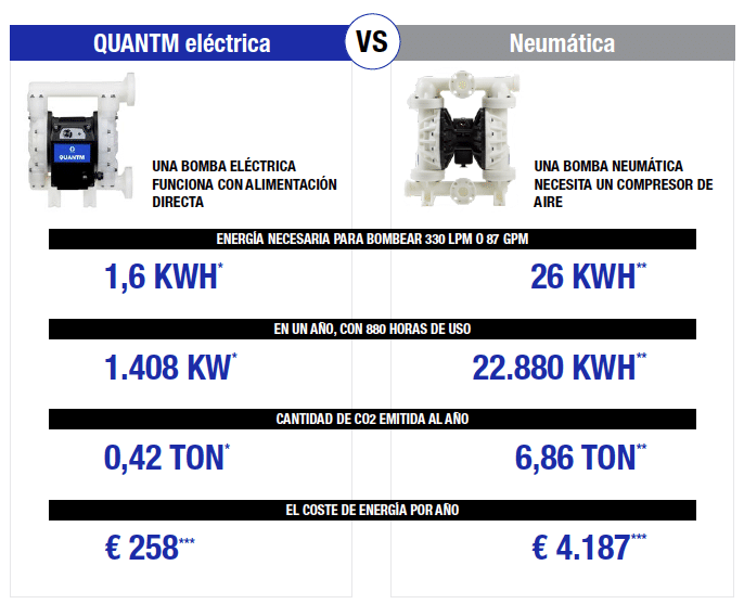 Gracias a la innovación que introdujo Graco con su modelo Quantm, aúna los beneficios de ambos tipos de bomba, tanto en el consumo como en el espacio que ocupan. Esto implica reducir los costes eléctricos y de emisión de CO2.