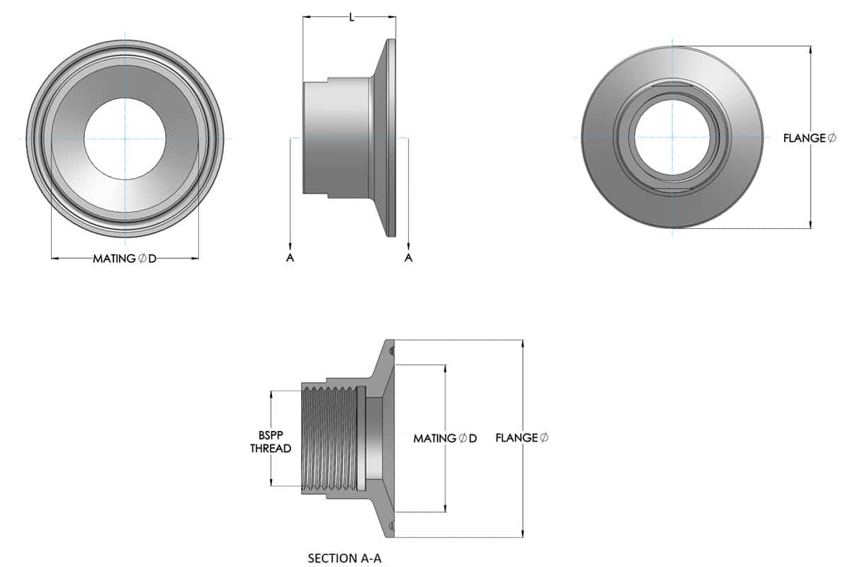 Los adaptadores de Advanced Coupligs permiten la conexión de una brida de sujeción directamente a un tubo, o rácor roscado. El material empleado es acero 316L y los machos se fabrican con roscas cónicas, aunque están disponibles en rosca paralela bajo demanda. Los adaptadores hembra vienen en rosca paralela con sello de PTFE interno.