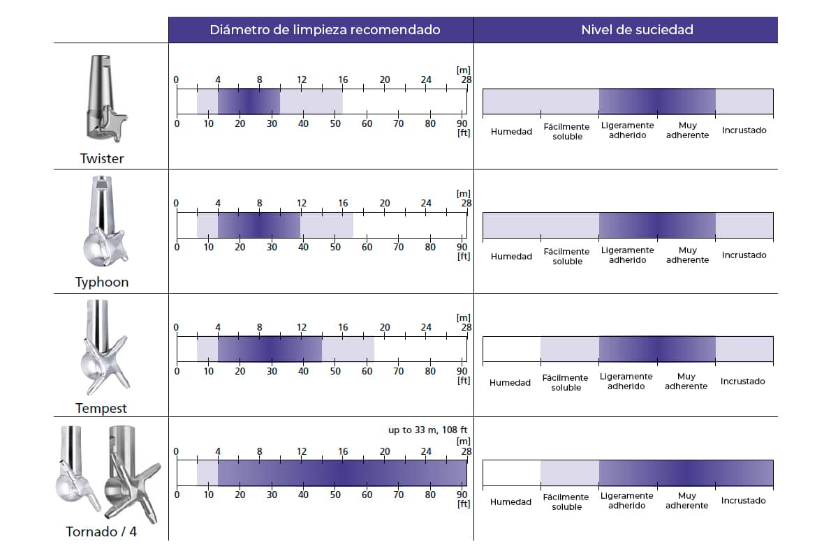 Los modelos orbitales alcanzan 360º y soportan una presión de entre 4 y 10 bar (excepto el Jumbo 6 que alcanza los 12):