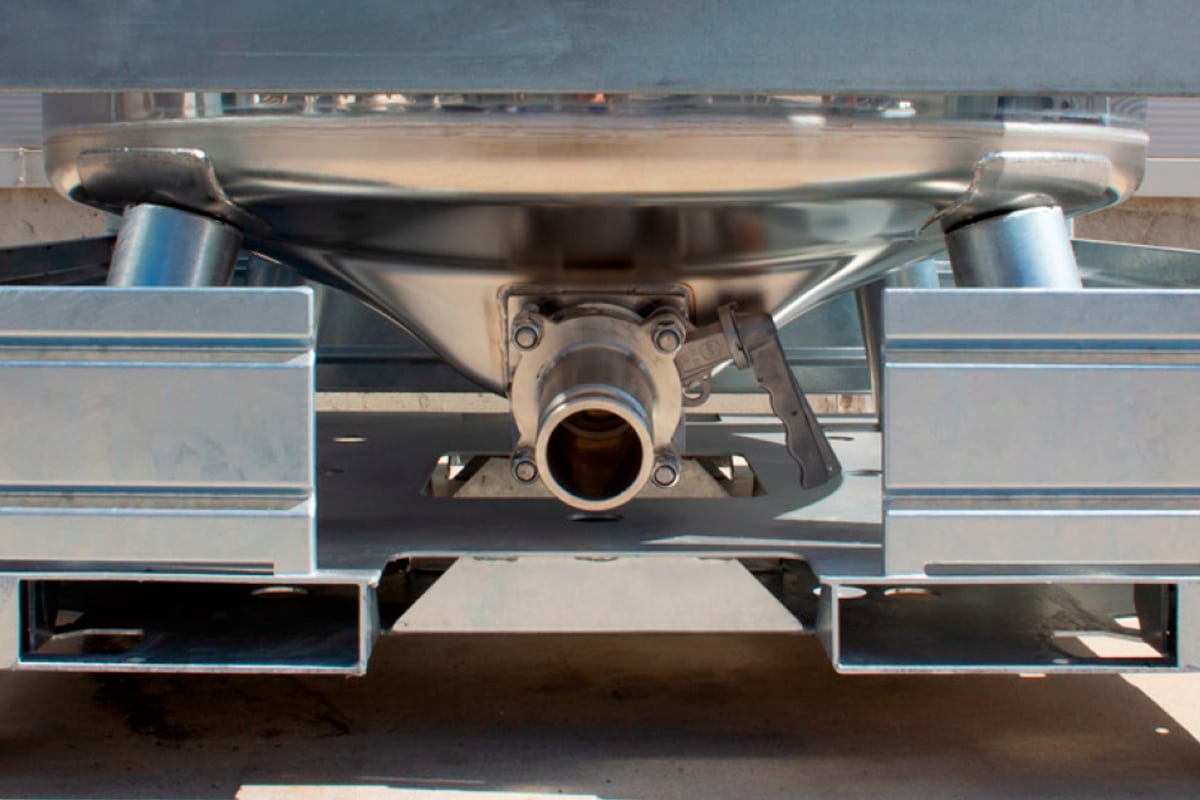 Descarga: válvula de mariposa DN 80 y acople Camlock DN 80 con tapa de aluminio (ALTERNATIVA: DN 50)