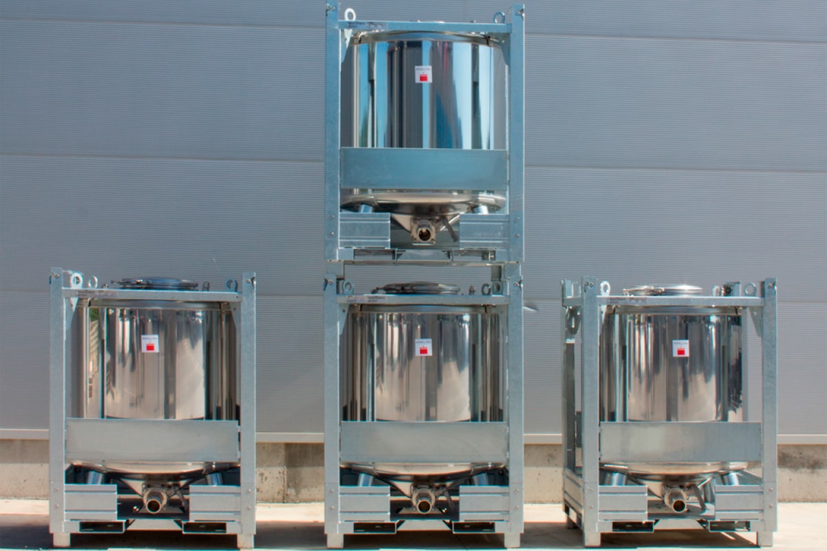 El contenedor paletizado AZ-E cumple con la normativa DIN establecida en la sección 16 UN-APP-RID para el transporte y almacenamiento de líquidos peligrosos con densidad no superior a 1.85 kg/dm3, grupos de embalaje II y III.