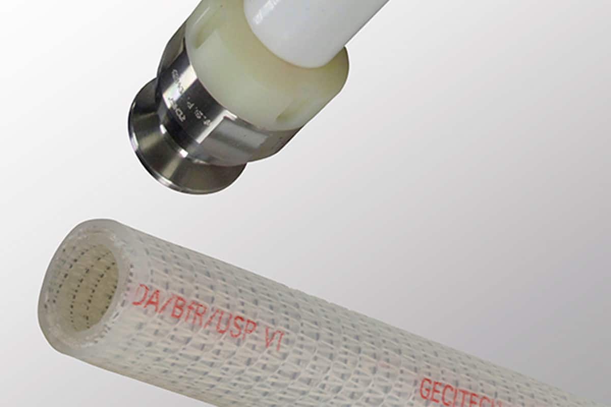 La manguera de silicona Gecitech GSI 75 NT es ideal para el uso alimentario, mientras que la versión GSI 75 NTP está certificada USP Class VI para la máximas exigencias del sector farmacéutico. Proceso automatizado en sala blanca conforme a normas internacionales