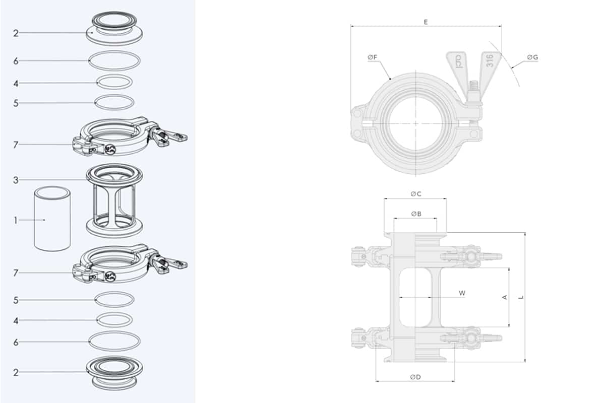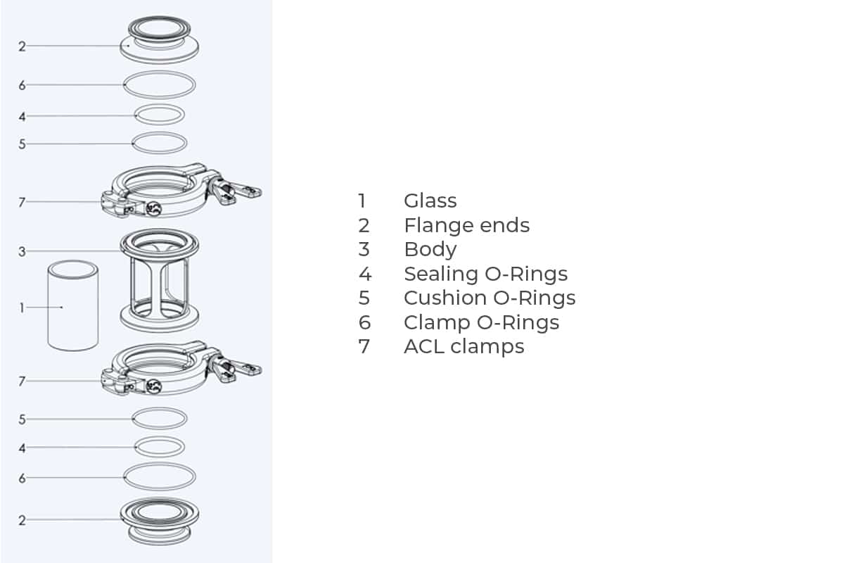Usando estas abrazaderas reduce la necesidad de herramientas para montar o desmontar la mirilla. Al aplicar una junta adicional se obtiene una barrera secundaria para prevenir la entrada de contaminaciones a la zona de la junta.