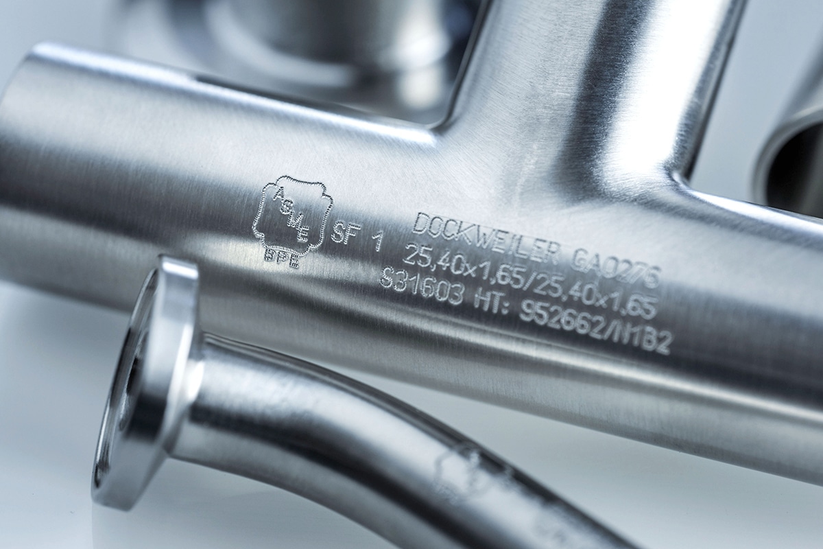 El tubo ASME-BPE y fitting de Dockweiler BPE (tubos de acero inoxidable) y bpe-direct (soldadura de acero inoxidable y accesorios de fijación) se desarrollan de acuerdo con la norma ASME BPE 2010. Ambos programas aseguran una compatibilidad óptima. Pueden ser utilizados para el transporte de medios líquidos en las industria biotecnológica, farmacéutica, cosmética y alimentaria, así como en la fotovoltaica y en otras industrias relacionadas. Todas nuestras juntas marcadas con láser garantizan una trazabilidad completa de acuerdo a ASME BPE.